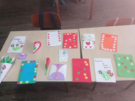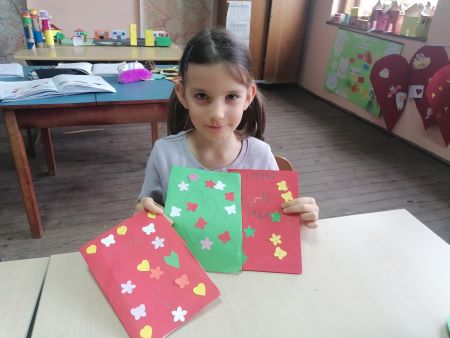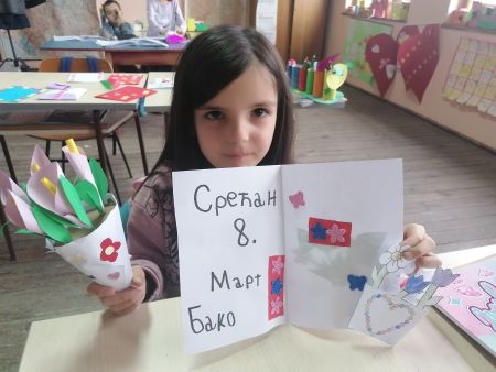 Поводом 8. марта ученици нижих разреда заједно са предшколцима припремили су честитке мамама и бакама на дар.