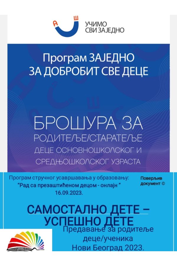 6. новембра 2024. године одржан је групни родитељски састанак са родитељима/старатељима ученика који похађају други разред матичне школе. Професор разредне наставе Миланка Павловић је том приликом родитељима представила програм "Заједно за добробит све деце", чији је циљ да информише родитеље зашто је важно и на који начин могу допринети напорима школе да се обезбеди квалитетно образовање за сву децу, како се подржава добробит деце у породици и школи, и зашто је важно да подстичу емпатичност код деце, узајамну подршку и сарадњу. Стручни сарадник, логопед Јелица Васиљевић говорила је на тему "Самостално дете-успешно дете", као дела активности у оквиру обуке "Рад са презештићеном децом", чији је један од циљева пружање подршке родитељима и заједничко превентивно деловање на подизању нивоа самосталности ученика. Активности су подржале учитељице Милица Арсенијевић и Љиљана Петровић.