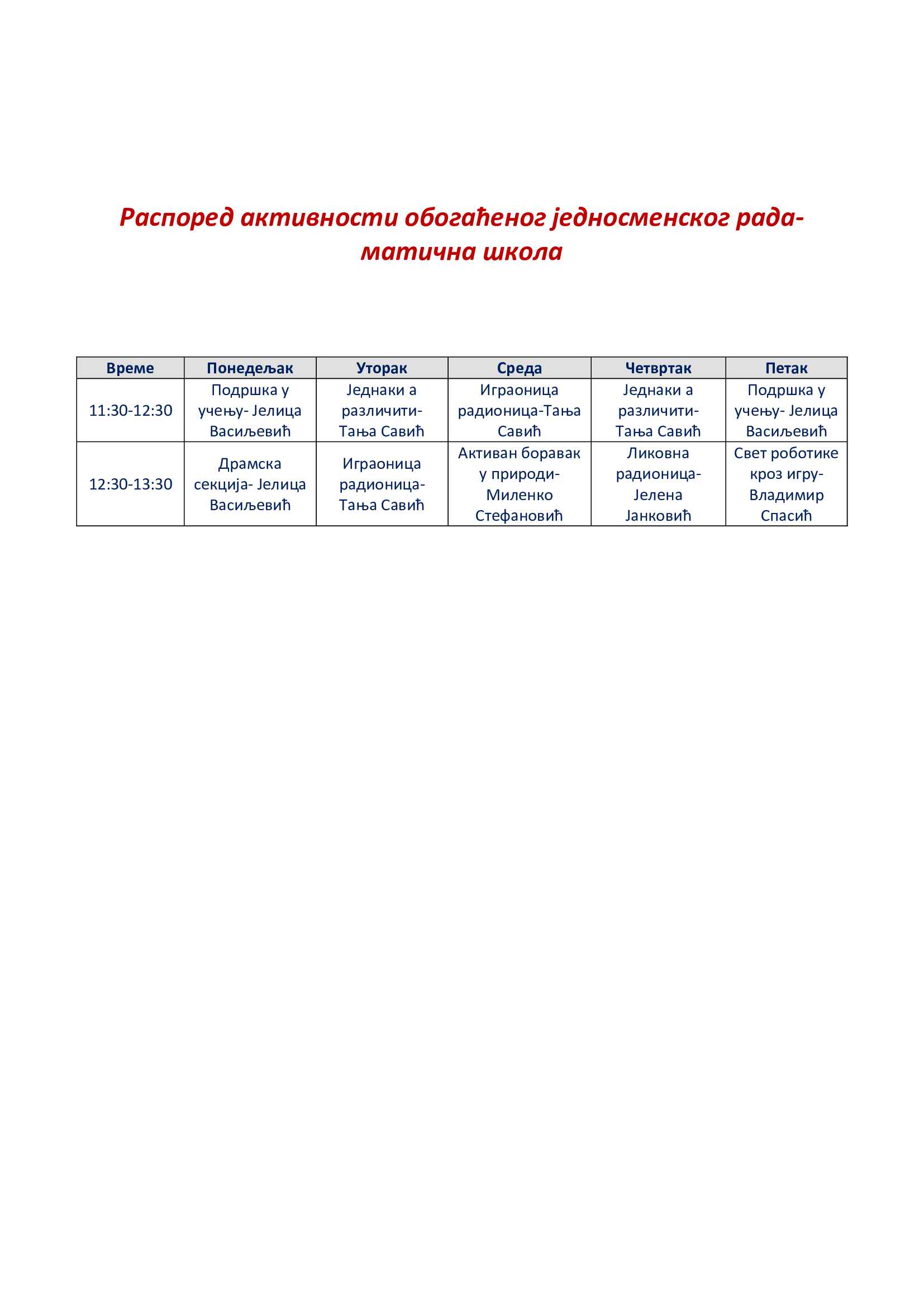 Распоред активности